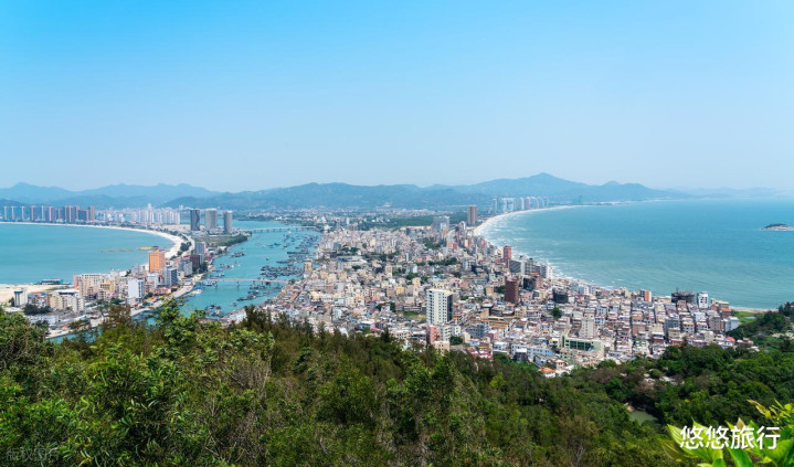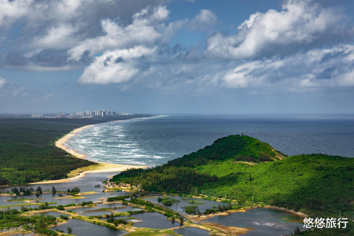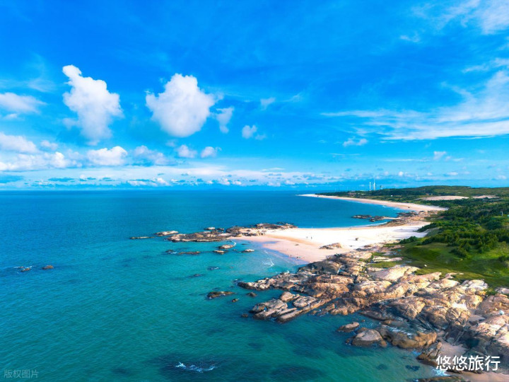 月亮湾的弧形沙滩,长达10公里,细沙如银,海水呈清透的果冻色。铜饱读岭山顶可同期鸟瞰月亮湾、淇水湾 、石头公园,远不雅大海和海岸线上的风车,海水蓝得深重。