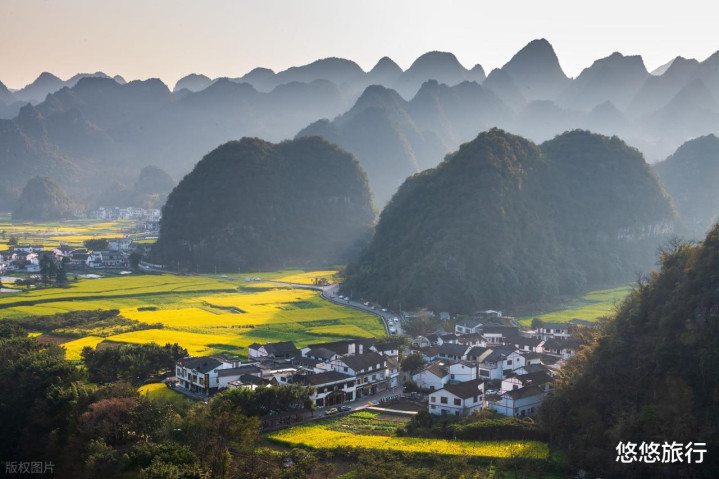 比较乌蒙山区的清冷,这里的好天要多许多。日间温度20℃出面,2万多座喀斯特锥状山岭构成的兴义万峰林,全面展示贵州的多平地貌。1月下旬,在纳灰村等地,布依族寨子间,油菜花已运转绽开。2月中旬的春节,恰是油菜花的盛花期。