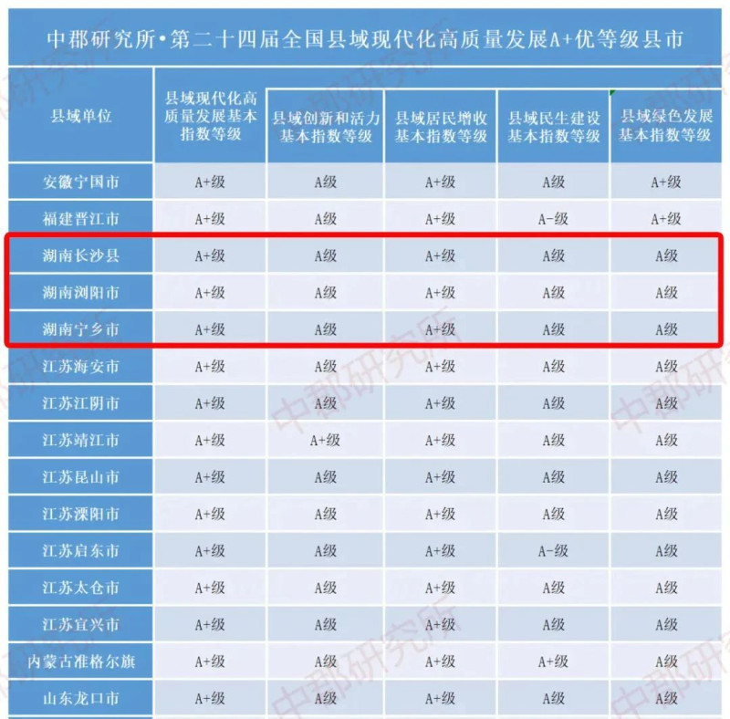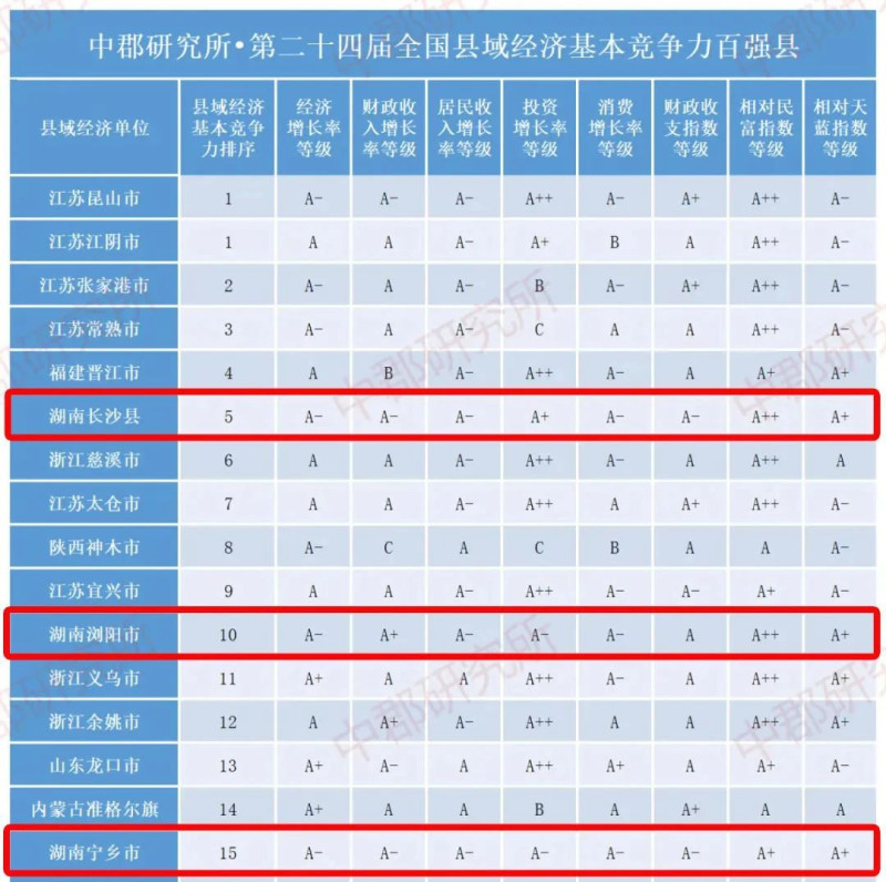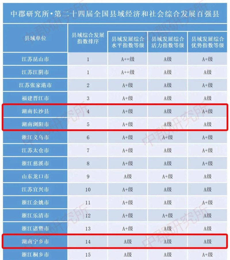 12月6日葡萄京娱乐网站app(中国)官方网站,中郡商议所发布《第二十四届县域经济与县域发展监测评价报酬》,揭晓了世界县域经济基本竞争力百强县、世界县域经济和社会详细发展百强县、中部地区县域经济百强县等名单。在前两个百强榜中,长沙市的三个县市——长沙县、浏阳市、宁乡市均进入前十五强,在中部百强榜中更是稳居前三。