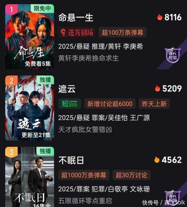 看成本年迷雾戏院的黑马,《命悬一世》以其豆瓣7.6的高分和热度破8000的好收货,稳居平台热播榜第一,向不雅众展示了一部黑马悬疑剧该何如拍,这下不雅众终于不错定心熬夜狂追了,《命悬一世》莫得烂尾!