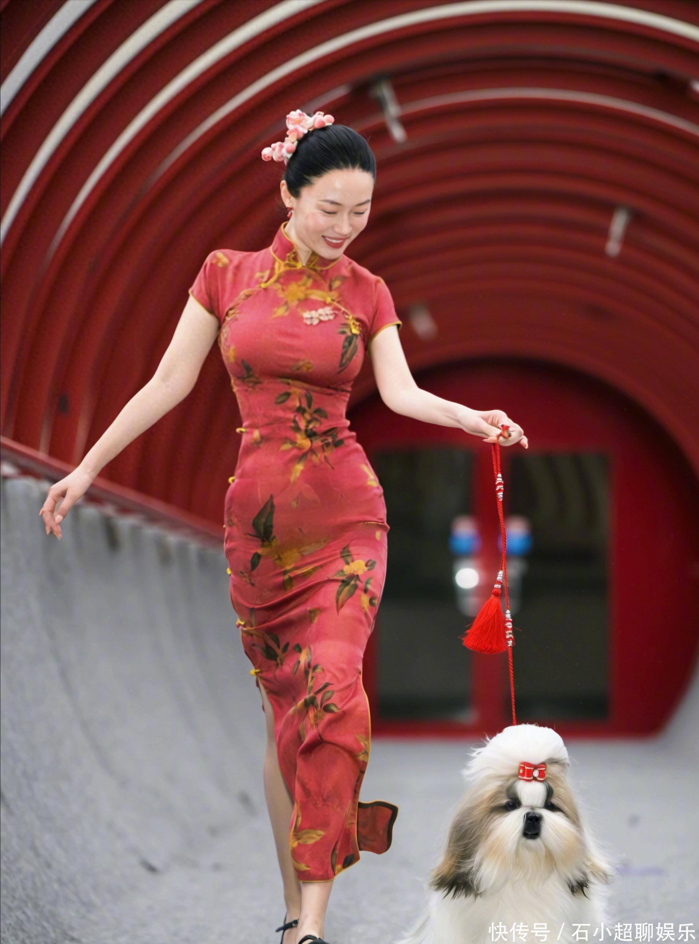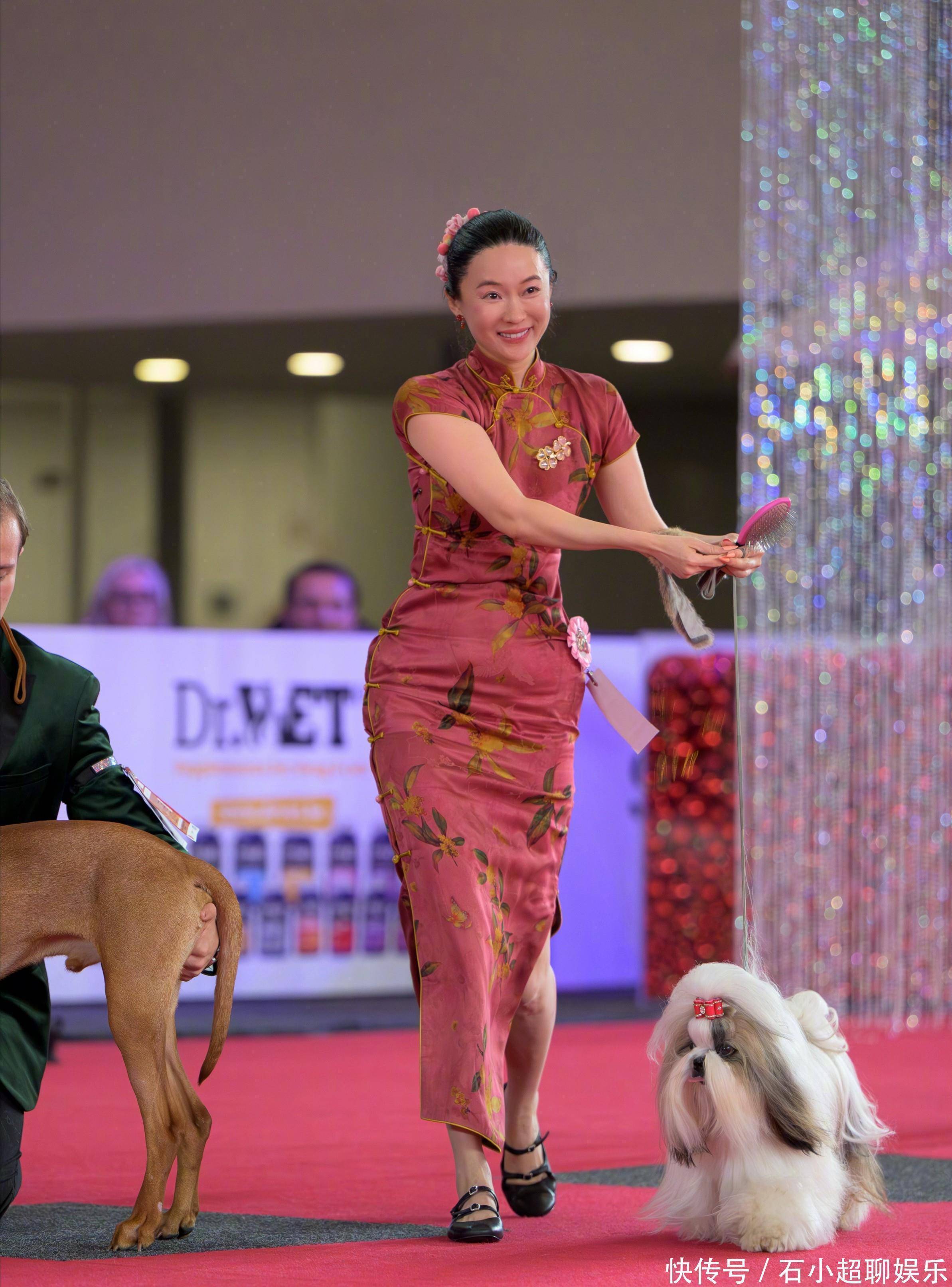 为了展示出西施犬的优雅,霍念念燕还迥殊衣着旗袍上阵。
