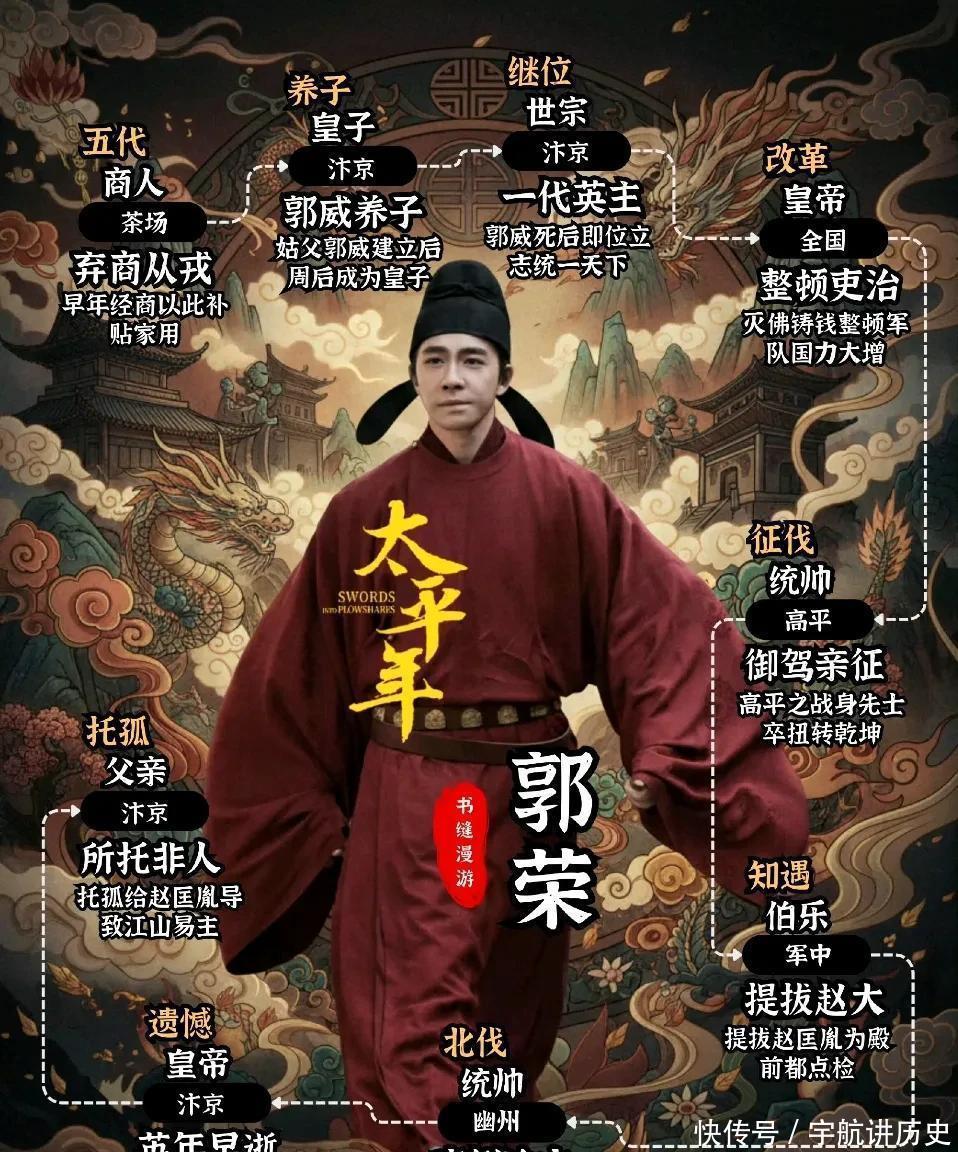他原本姓柴,家景中落,过继给了姑母柴氏。姑夫郭威——也便是后周的建国天子。柴荣给姑妈姑父当女儿,也就更名为郭荣了。