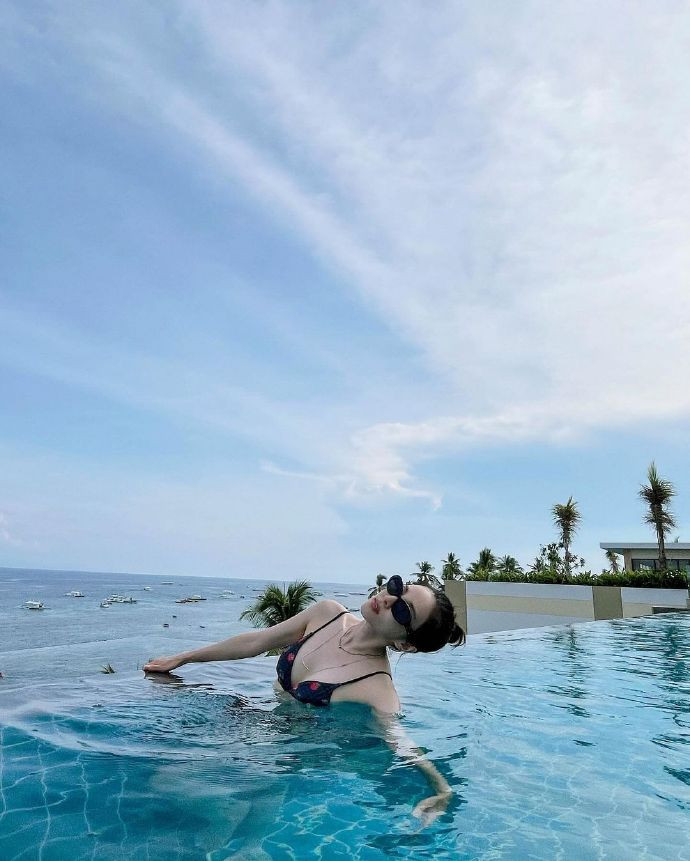 公开的像片中,朴山多拉共享了度假时刻拍摄的像片。像片中,她似乎正在自在地渡逾期光,布景是清秀的热带海滩,它似乎是在豪华度假村的庞大泳池中拍摄的,周围环绕着澄澈的蓝色大海、太空和棕榈树,这种布景进一步突显了朴山多拉的放纵氛围和奢侈形象。