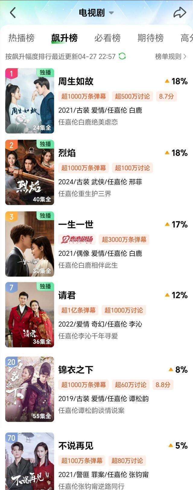 大众皆知,任嘉伦参演的剧集在爱奇艺平台数目最多。每当他在爱奇艺有新剧播出时,齐会带动其过往作品的播放量增长,涵盖多样题材类型。不雅众不错笔据我方的喜好解放选拔不雅看,这无疑有助于爱奇艺平台留住会员用户。