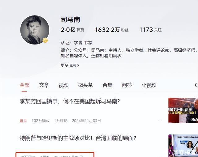 剪辑|江娱迟 序论 有名大V司马南的身上如今充满争议,如故有几许东说念主可爱他,当今就有几许东说念主气忿他。 如故他是反伪科学的前卫,敢于揭穿无理的玄学迷信,他亦然批判好意思日的斗士,敢于反好意思反日。 但临了却发现,这些齐是他为了 赚流量的“饰演”罢了 ,嘴里骂的有多狠,他在好意思国的屋子就有多大。