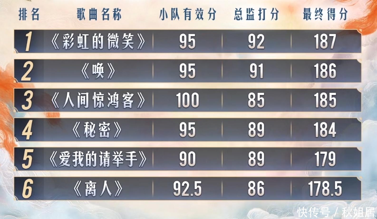43. 沙一汀 vocals部分完成出色,但由于被安排现场书写羊毫字,实践沦为配景板,存在感大幅削弱。