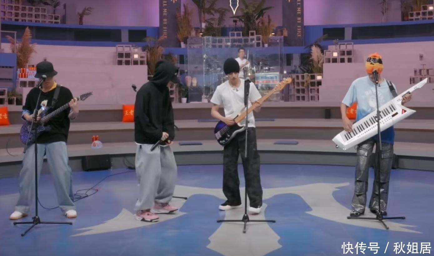 13. 第一个登台的是晨安、林晓峰以及TOP三位成员组成的乐队组合,带来的改编曲目是《彩虹的含笑》。