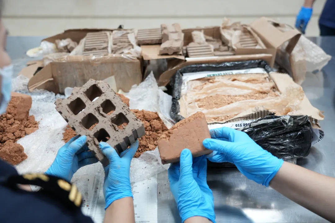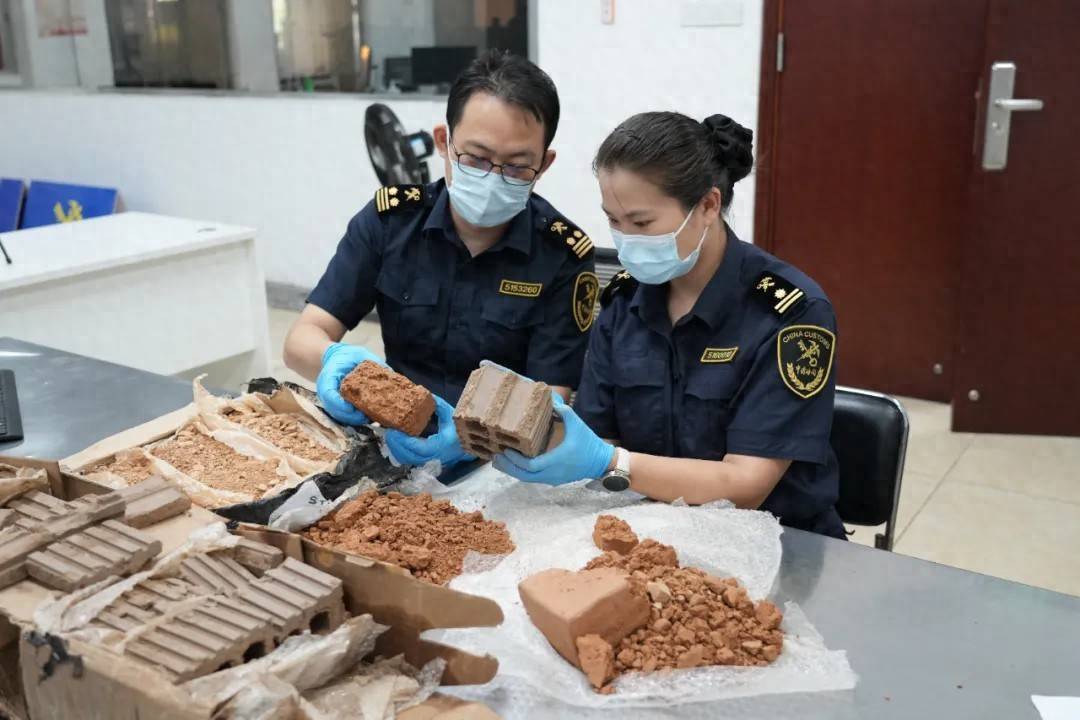 广州海关所属广州白云机场海关关员对一批进境快件进行监管时,发现1票陈说品名为“砖块样品10块”的进境快件机检图像格外。海关关员偶然防止并进一步检察,在该快件包裹内查获多半土块和洒落的泥土,悉数27.2千克。
