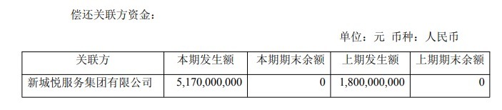 新城控股示意,以上发生额包含新城悦办事集团有限公司(简称:新城悦办事,01755.HK)之子公司西藏新城悦物业办事股份有限公司、上海泊轶房产议论有限公司和江苏新城悦控股集团有限公司(曾用名“江苏新城悦控股有限公司”)与公司发生的资金拆借。新城悦办事集团有限公司与本公司的关联关系为受合并最终范围方范围。2023年内,日最高余额7亿元,2023年12月31日余额为0。2024年内,日最高余额8亿元,2024年12月31日余额为0。除2023年一笔关联方资金于转账后次月偿还外,扫数武艺项所涉的关联方资金均于转账当月偿还。