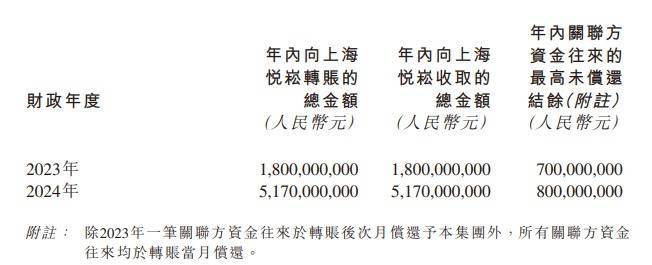 甩掉2023年及2024年12月31日止年度,关联方资金交往的总金额隔离为东谈主民币1,800百万元及东谈主民币5,170百万元。除2023年的一笔资金交往外,集团转账予上海悦崧的资金均于同月偿还予集团,于2023年12月31日及2024年12月31日均无录得任何关联方资金交往的未偿还结余。