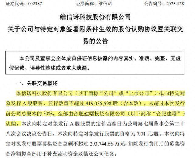 2025年11月9日,维信诺公告称,公司正在贪图向特定对象刊行A股股票,若刊行完成,公司控股鼓励将变更为合肥建曙投资有限公司,施行适度东说念主将变更为合肥市蜀山区东说念主民政府。